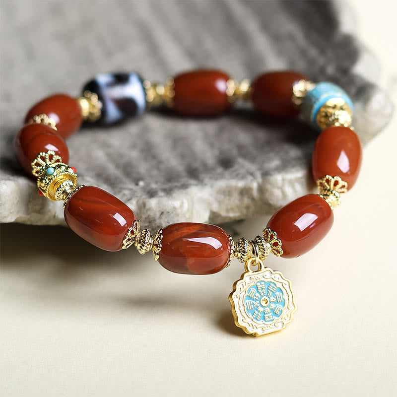 Buddha Stones Natural South Red Agate Bagua Dzi Bead Power Bracelet