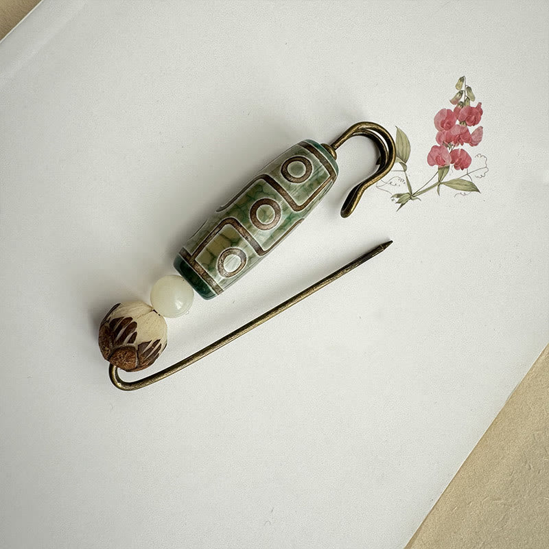 Nine-Eye Dzi Bead Bodhi Seed Lotus Brooch combines the powerful Nine-Eye Dzi bead, Bodhi seed, and lotus. The Dzi bead is known for its protective qualities, while Bodhi seeds symbolize wisdom and awakening. The lotus represents spiritual purity and enlightenment, making this brooch an ideal accessory for those seeking protection, wisdom, and inner peace.💕