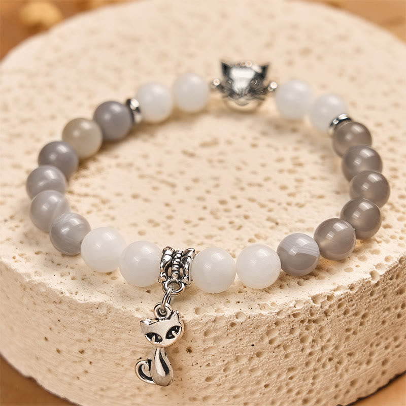 Buddha Stones Ragdoll Cat Gray Striped Agate Chalcedony Support Bracelet