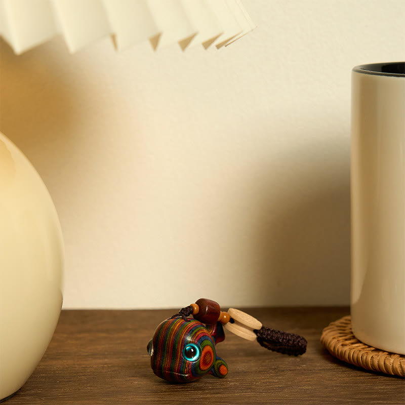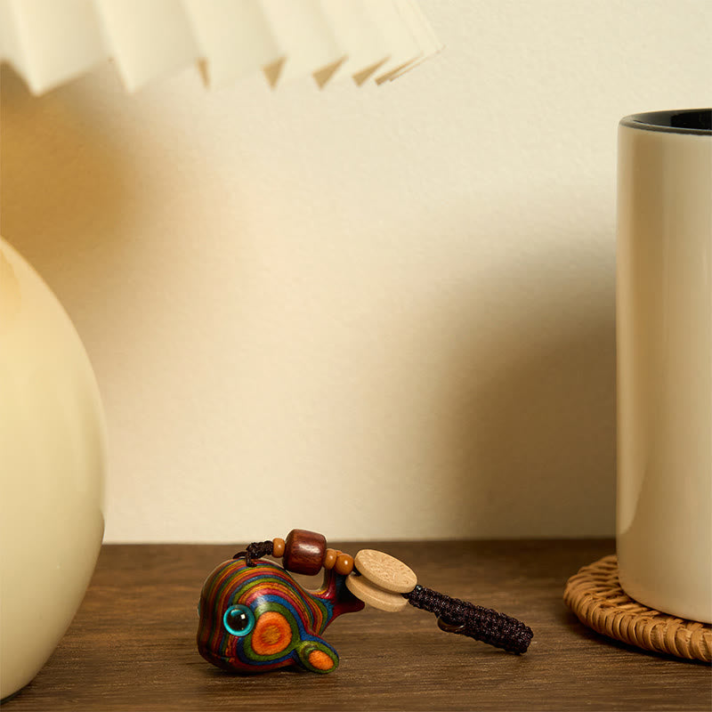 Buddha Stones Rainbow Eucalyptus Dolphin Carved Positive Key Chain Phone Hanging Decoration