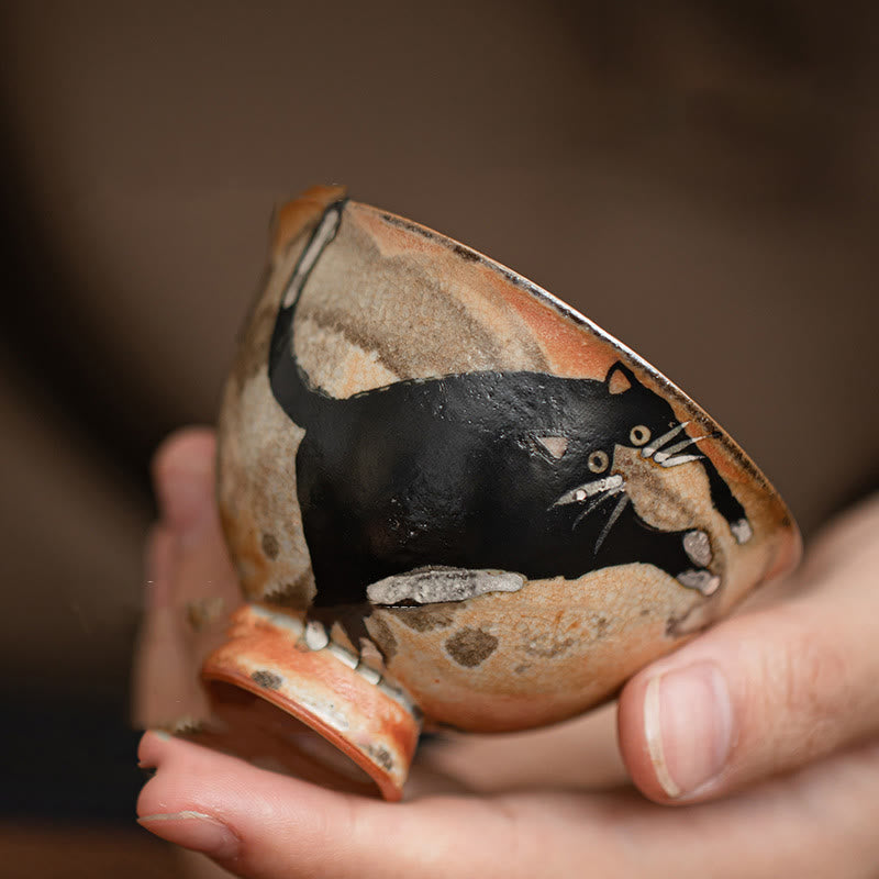 Buddha Stones Small Cute Cat Teacup Kung Fu Tea Cup 60ml