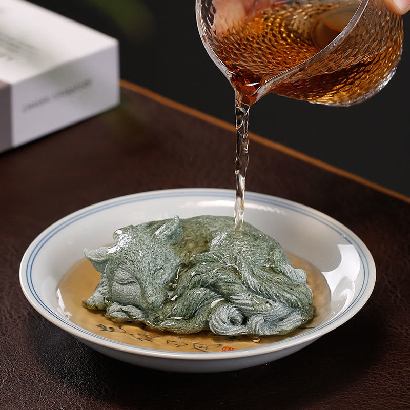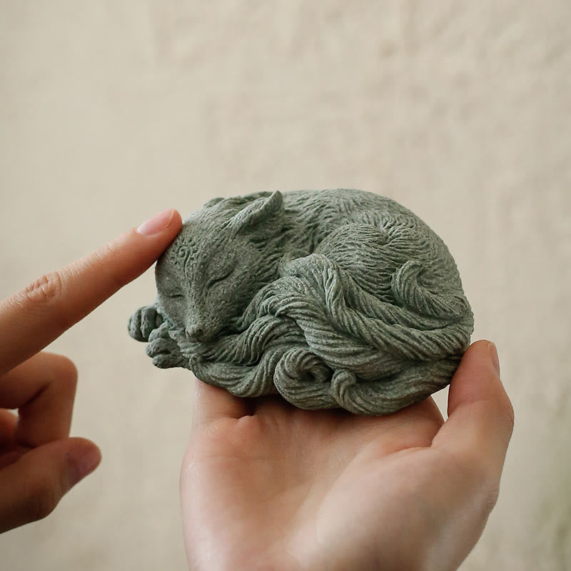 Buddha Stones Small Nine Tailed Fox Protection Home Tea Pet Figurine Decoration