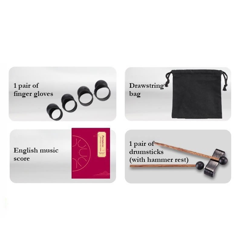 - Package: Manual*1, Scale Sticker *1, Drum Stick*2, Bag*1, Drum*1, Finger Picks*2
