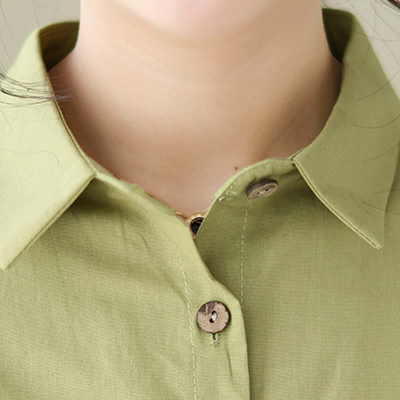 Buddha Stones Summer Casual Plain Buttons Stand Collar Design Three Quarter Sleeve Acrylic Cardigan Midi Dress With Pockets