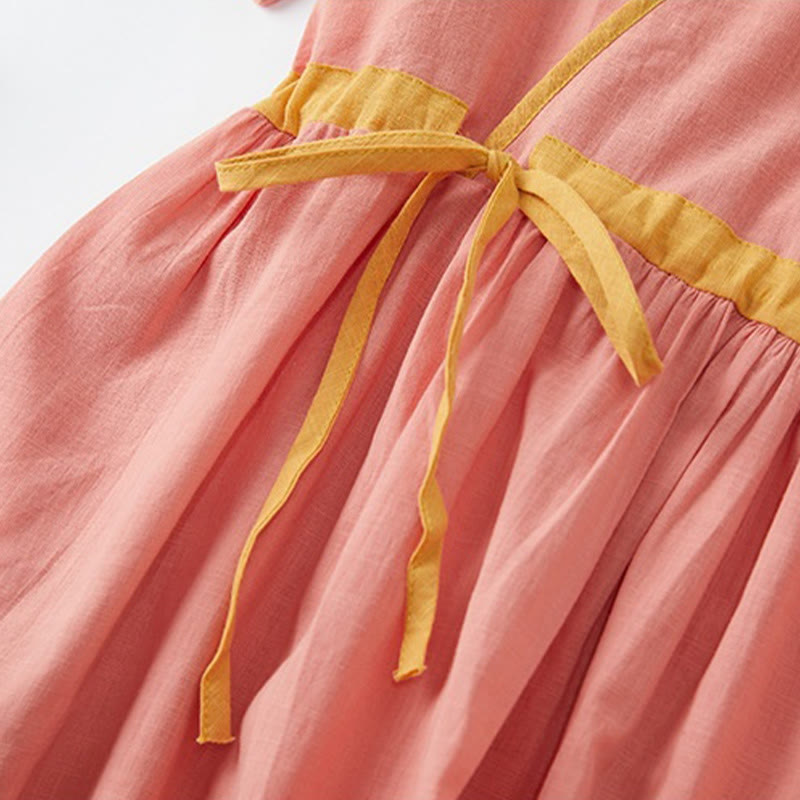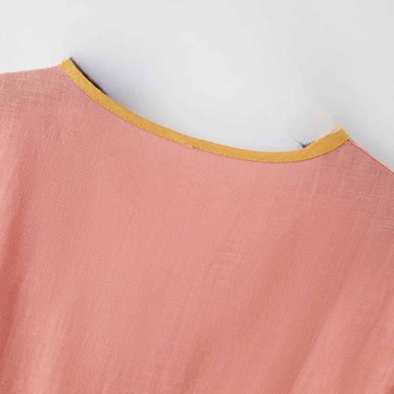 Buddha Stones Summer Casual Stitching Color Lace-up Design V-Neck Short Sleeve Midi Dress