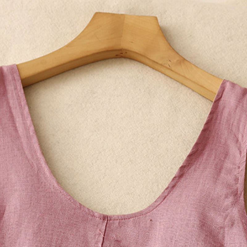 Buddha Stones Summer Daily Casual Pure Color Crew Neck Simple Design Sleeveless Midi Dress