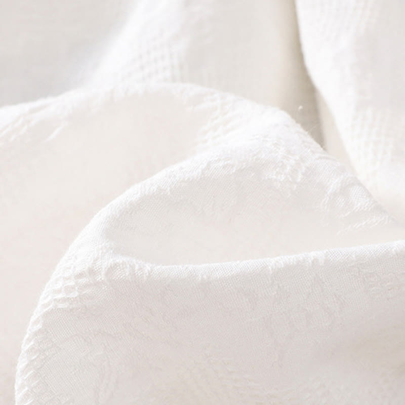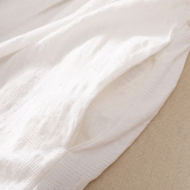 Buddha Stones Summer Plain Hollow Jacquard Design Cotton Short Sleeve Midi Dress With Pockets
