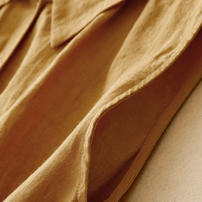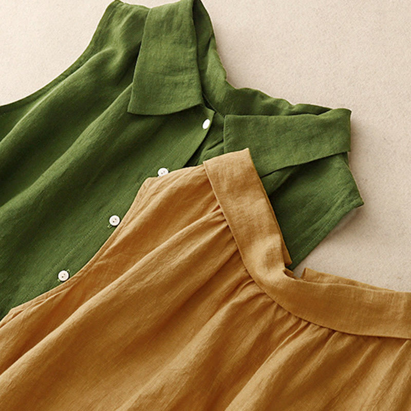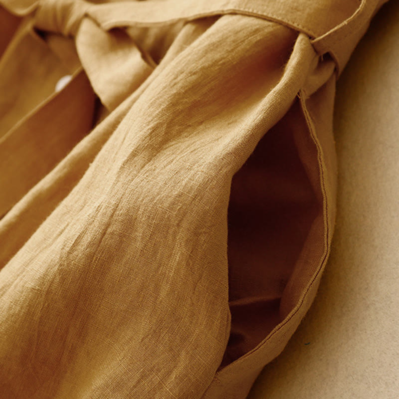 Buddha Stones Summer Plain Lace-up Button Front Design Lapel Sleeveless Cotton Midi Dress Cardigan