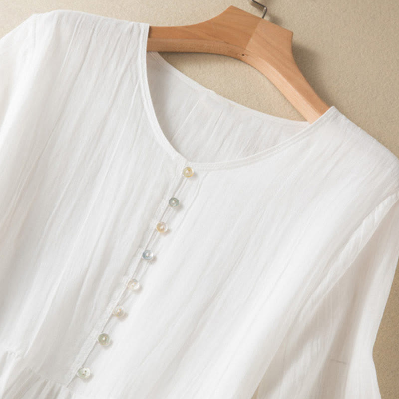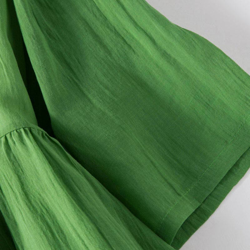 Buddha Stones Summer V-Neck Design Half Sleeve Cotton Midi Dress