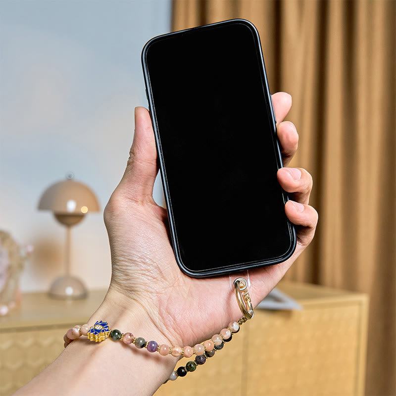 Buddha Stones Tourmaline Sun Stone Lotus Positive Key Chain Phone Hanging Decoration