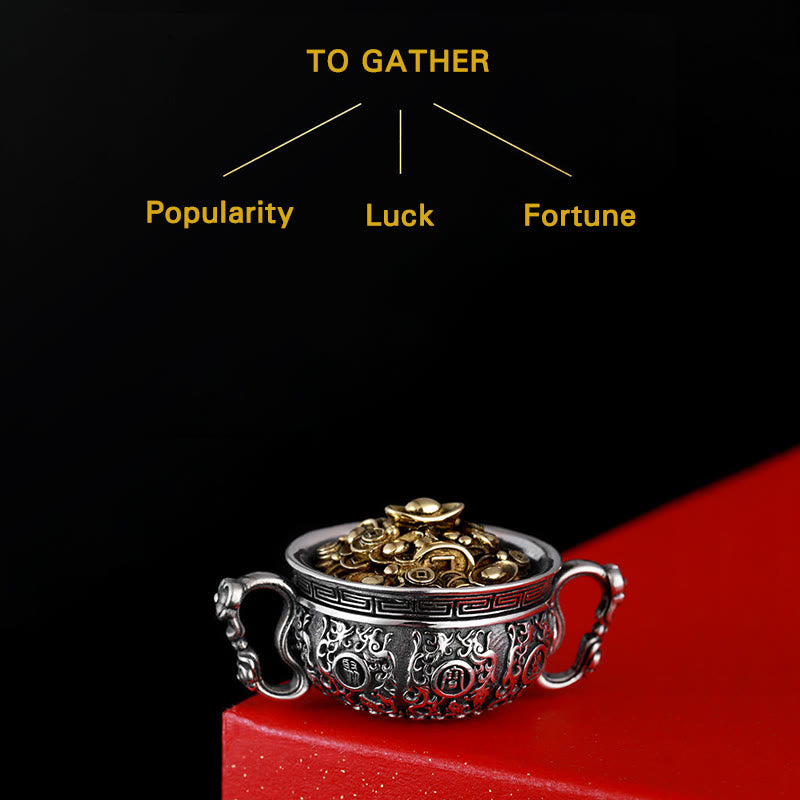 Buddha Stones Treasure Bowl Copper Coin Ingots Wealth Necklace Pendant
