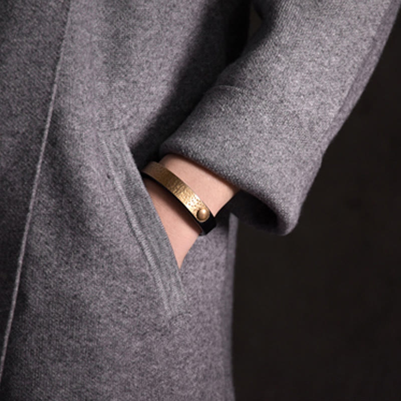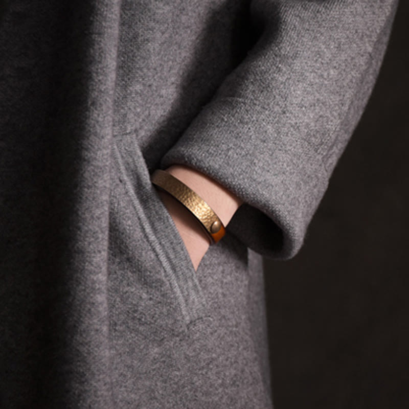 Buddha Stones Vintage Handmade Texture Copper Brass Leather Wealth Bracelet Bangle