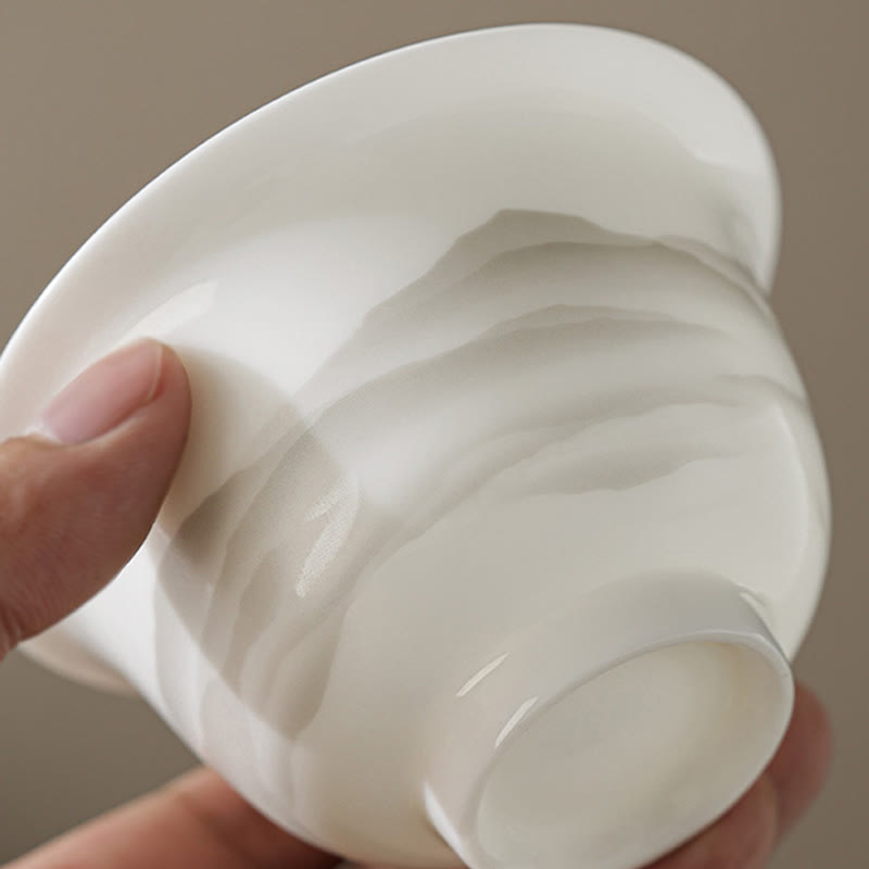 Buddha Stones Vintage Ink Painting Mountain White Porcelain Ceramic Gaiwan Sancai Teacup Kung Fu Tea Cup And Saucer With Lid Tea Utensil Teapot