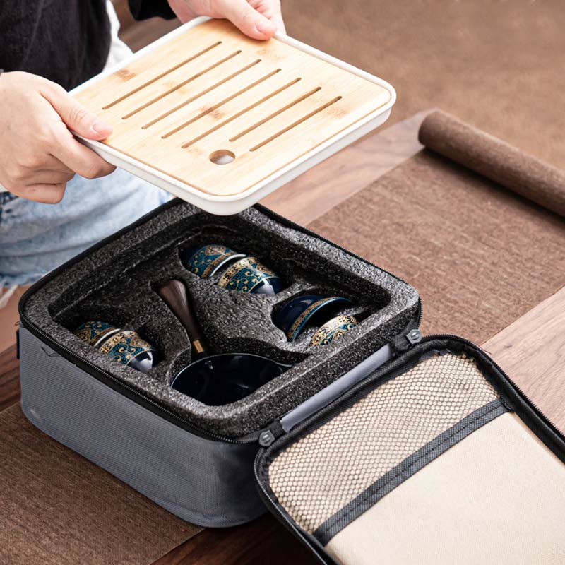 Buddha Stones Chinese Gongfu Tea Set Design Ceramic Teapot Portable Gift Bag