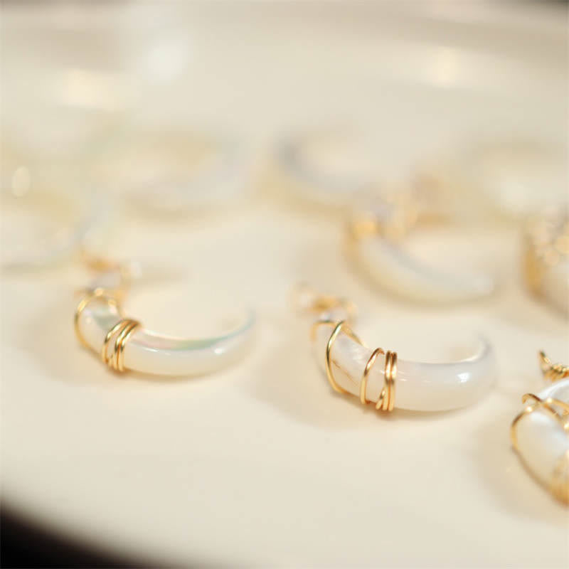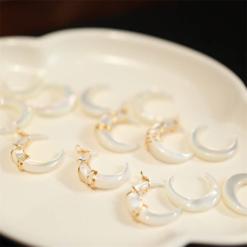 Buddha Stones Natural Tridacna Stone Crescent Moon Blessing Necklace Pendant