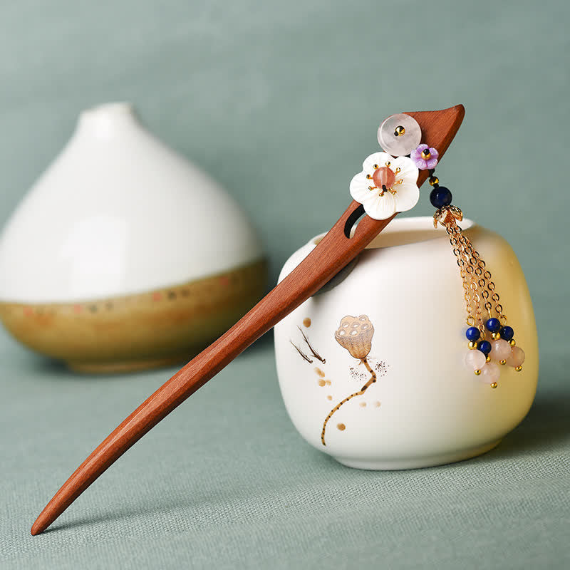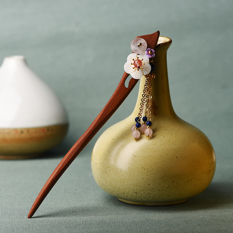 Buddha Stones Red Sandalwood Pink Crystal Charm Healing Hairpin Decorations