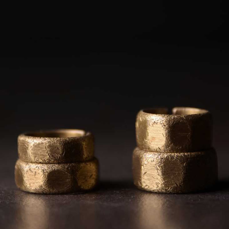 Buddha Stones Tibetan Simple Design Copper Brass Frosted Wealth Ring